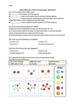 Atoms Molecules Compounds And Elements Worksheet - Printable Word Searches