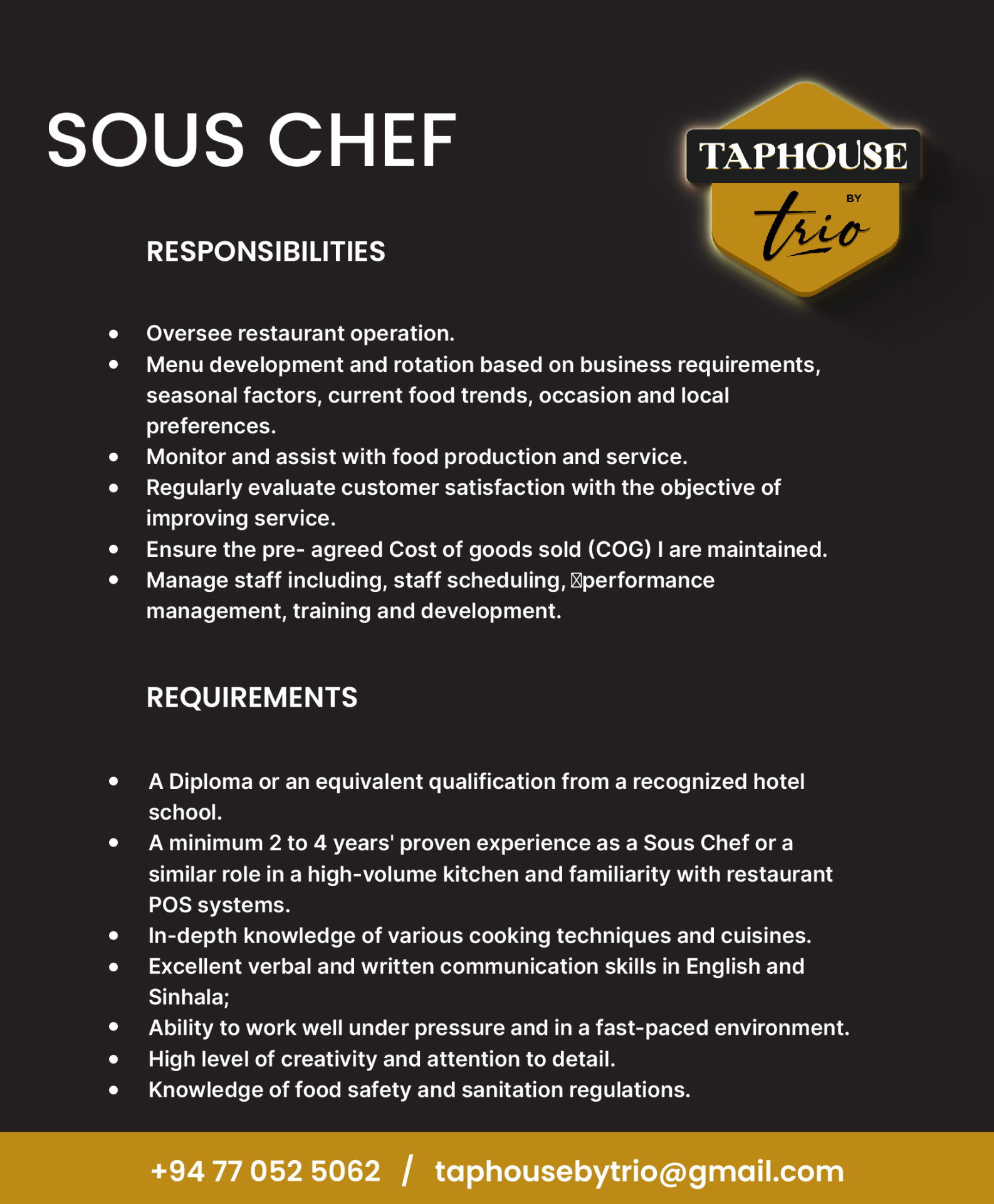 Bachelor’s Degree 4 Years Culinary arts combined with hospitality management