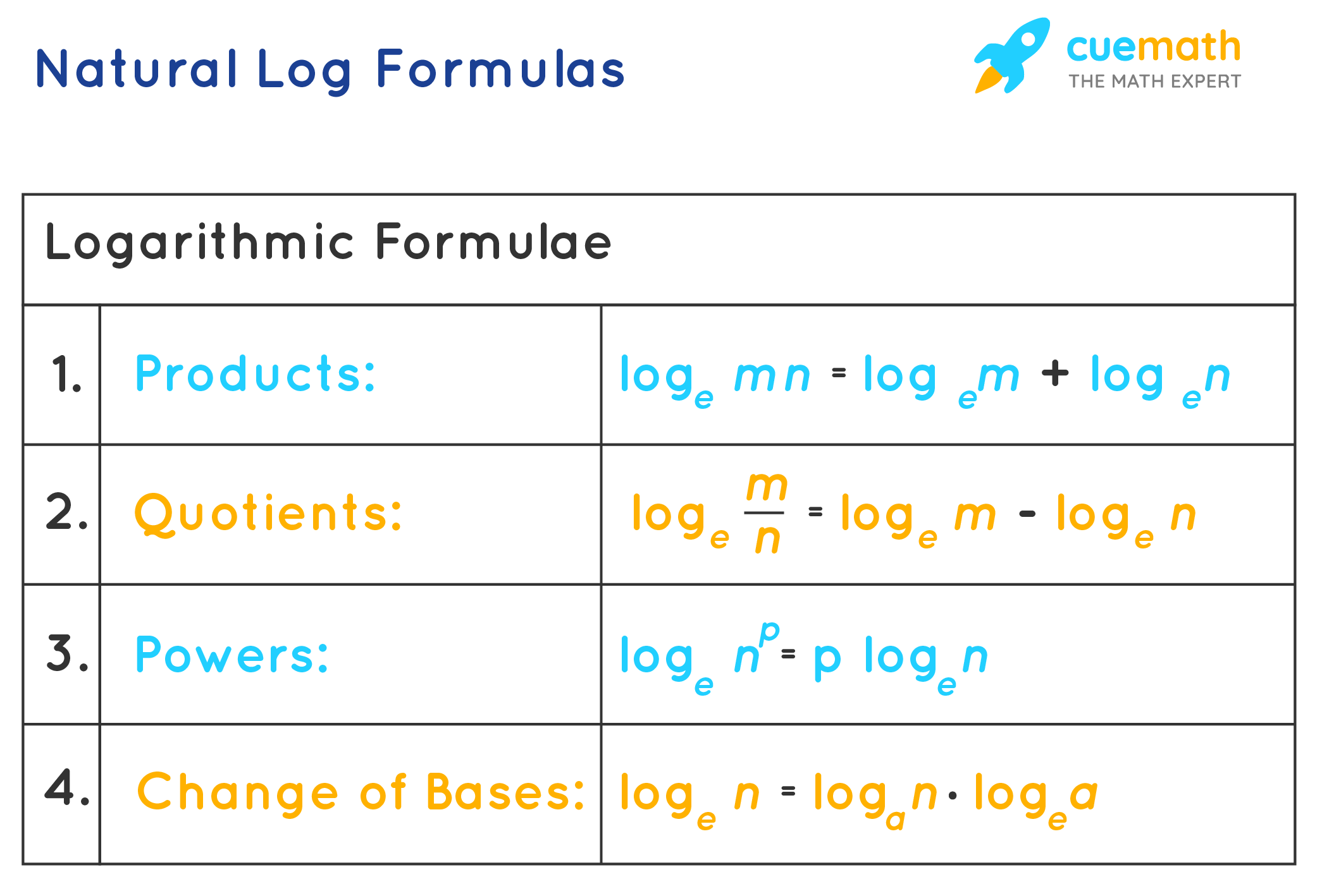 • The Domain: Logarithmic functions are only defined for positive values of x. Therefore, x > 0.