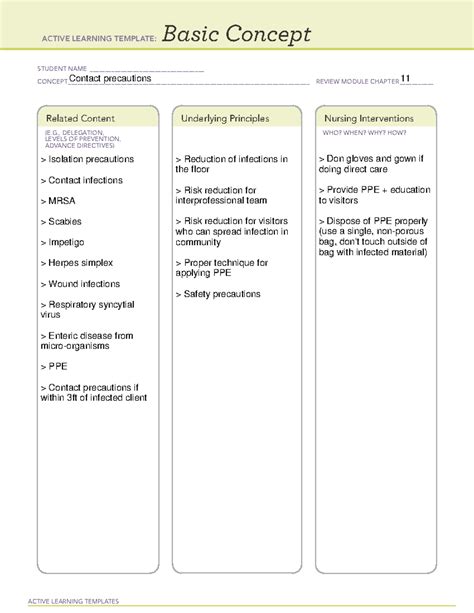 Basic Concept Contact precautions - ACTIVE LEARNING TEMPLATES Basic Concept STUDENT NAME - Studocu