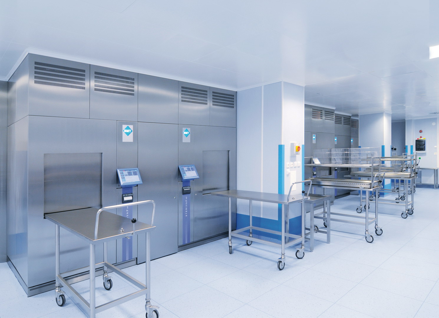 • Utility Accessibility: Specialized gases, vacuum lines, and high-purity water systems need to be easily accessible through ceiling grids or service columns.