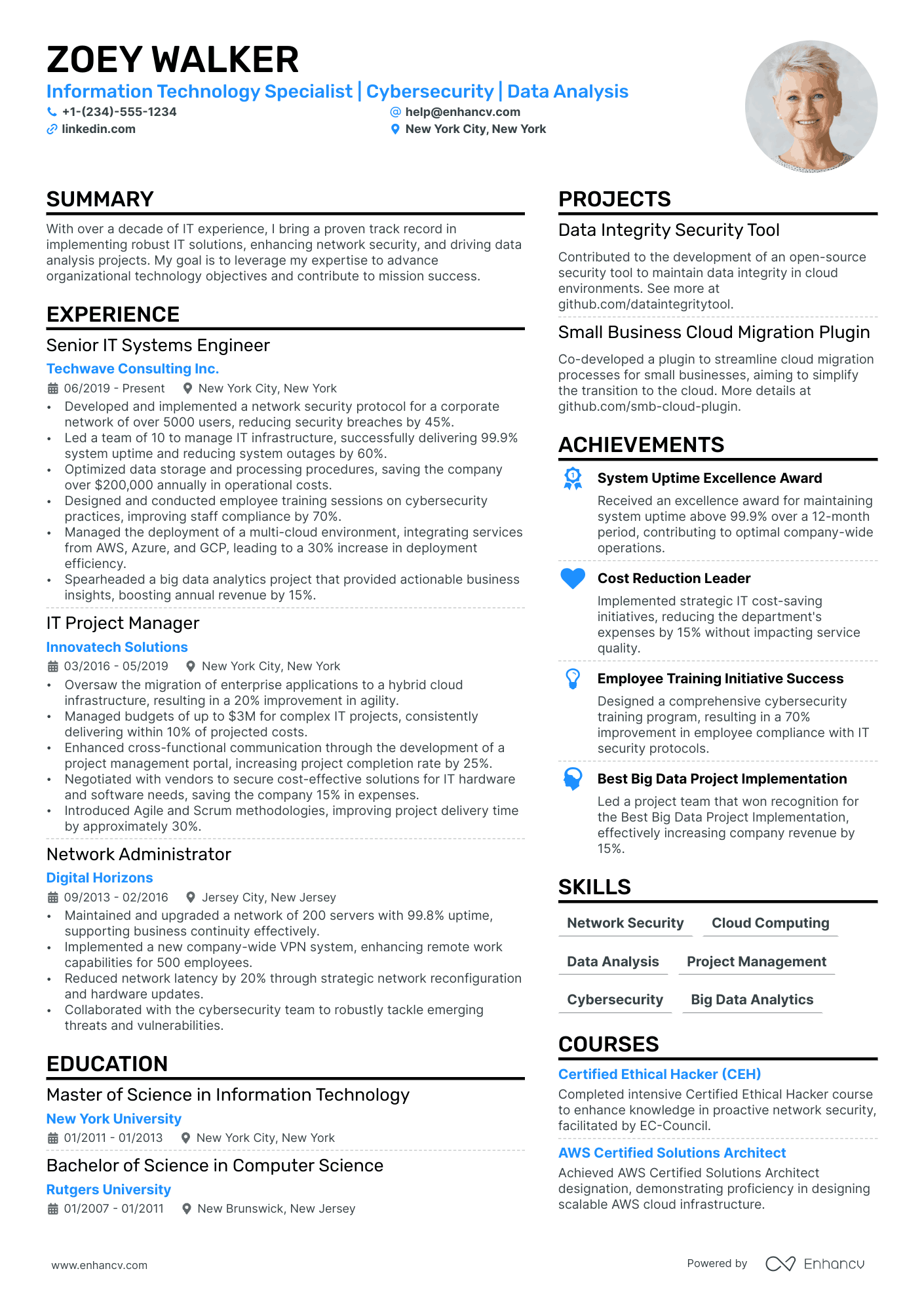 | Technical Proficiency | Cloud Computing (AWS/Azure/GCP), API Integrations, Cybersecurity, Data Analytics |