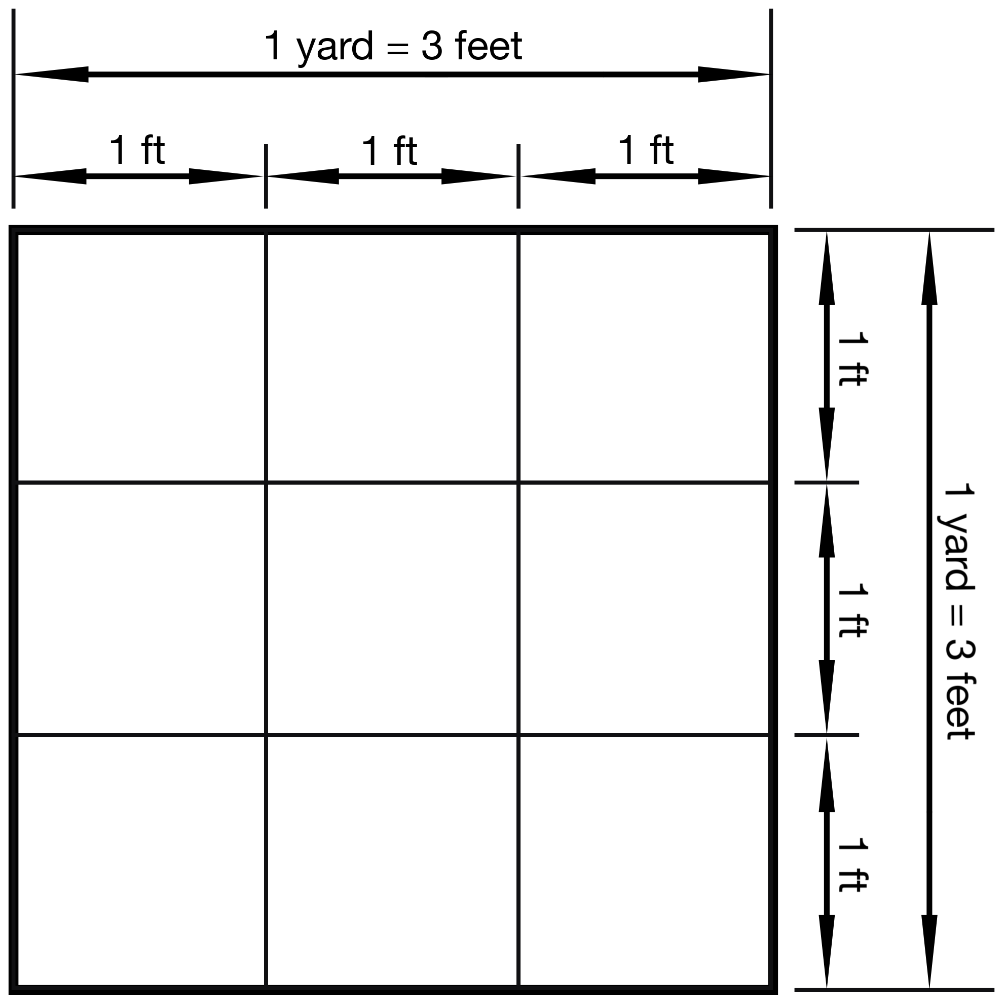 | 1 Yard | 0.9144 Meters | 1 Yard |